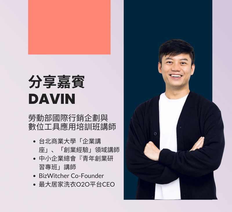 Davin 曾任多個知名品牌顧問,協助品牌在市場策略、數位行銷及創新技術應用上取得突破性成長,並成功推動多項跨國合作專案。勞動部國際行銷企劃與數位工具應用培訓班講師